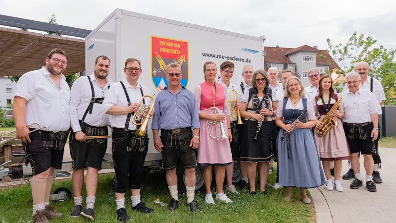 Aufgenommen 2025 auf der Zeckerner Kerwa – unsere ca. 15 aktiven Musikerinnen und Musiker.